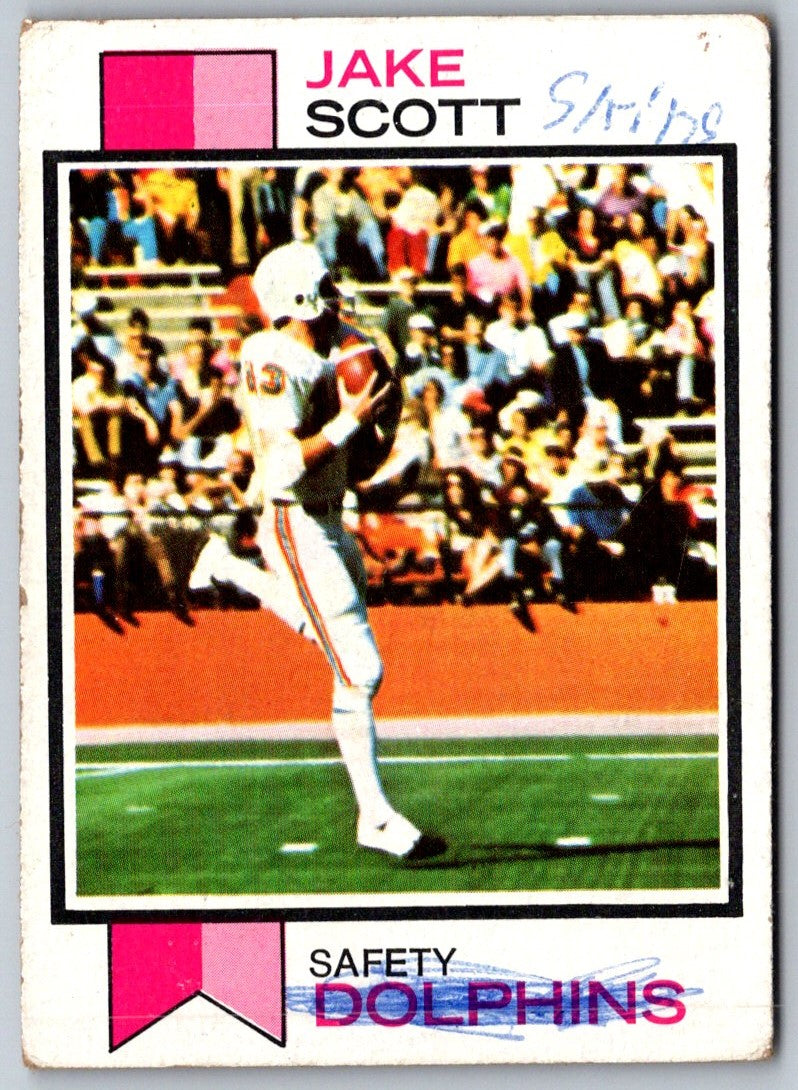 This 1973 Topps Jake Scott #390 card is the perfect addition to any NFL fan's collection! The card features a full-color action shot of the Miami Dolphins safety, with a white background that makes the image pop. The card back features a detailed biography of the player, and his career highlights. It's a must-have for any die-hard football fan!