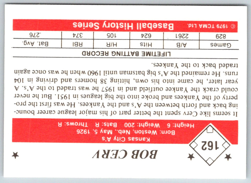 This 1979 TCMA 50's Bob Cerv #162 Kansas City Athletics card is a must-have for any collector! It features a great image of the legendary Bob Cerv in his Kansas City Athletics uniform, and is in near-mint condition. The card is perfect for any Athletics fan, and is sure to be a great addition to your collection! Get it today and add a piece of history to your collection!