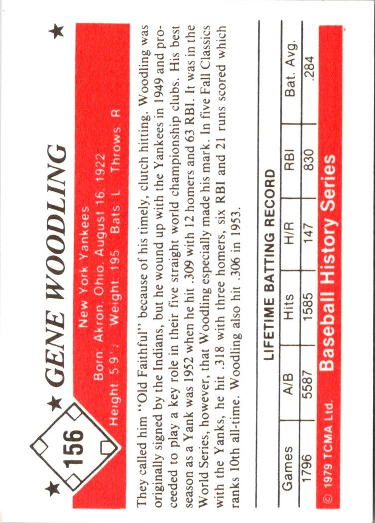 Description: 1979 TCMA 50's Gene Woodling #156