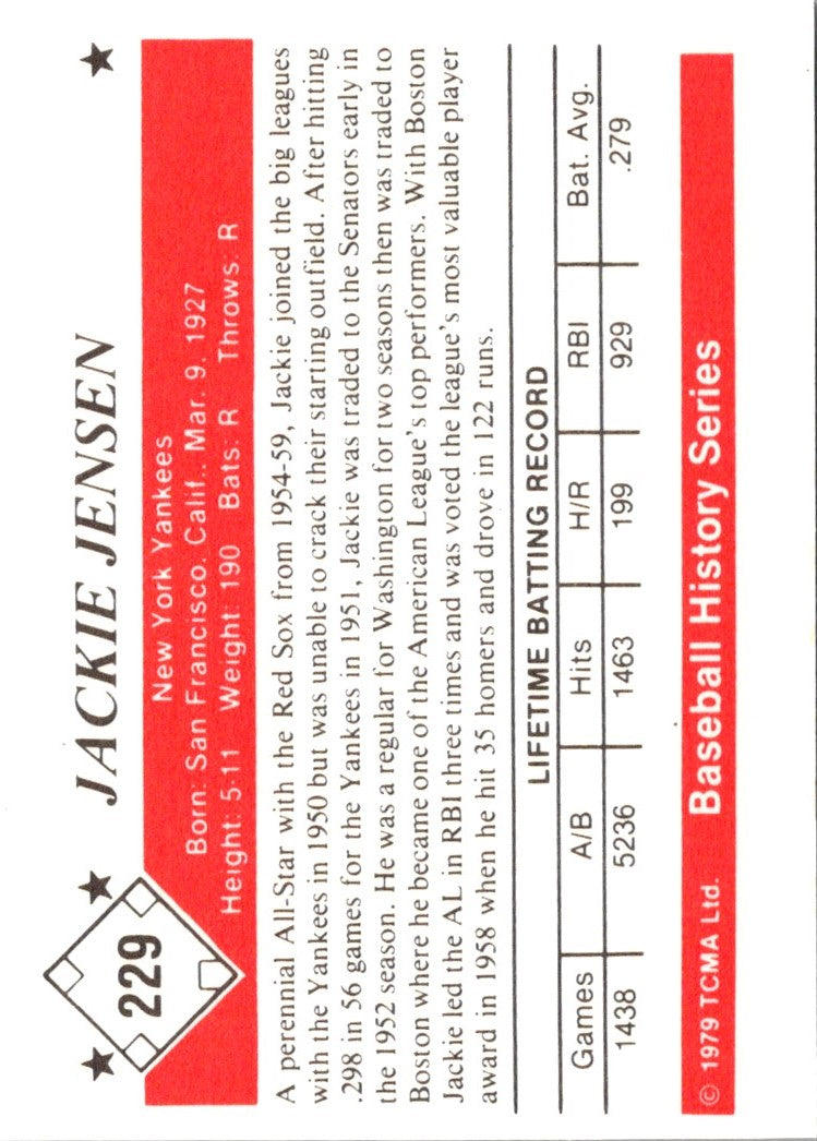 Description: 1979 TCMA 50's Jackie Jensen #229