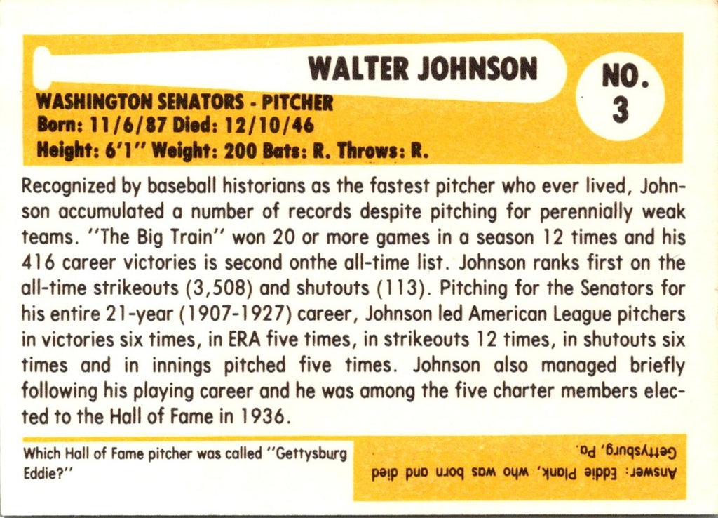 1980 SSPC HOF Walter Johnson #3