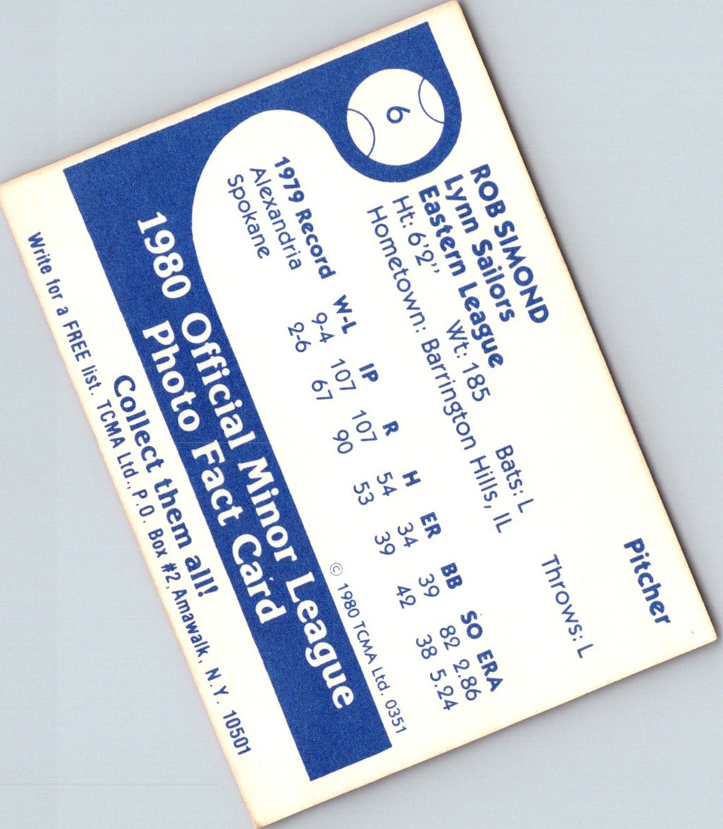 Description: 1980 TCMA Lynn Sailors Rob Simond #6