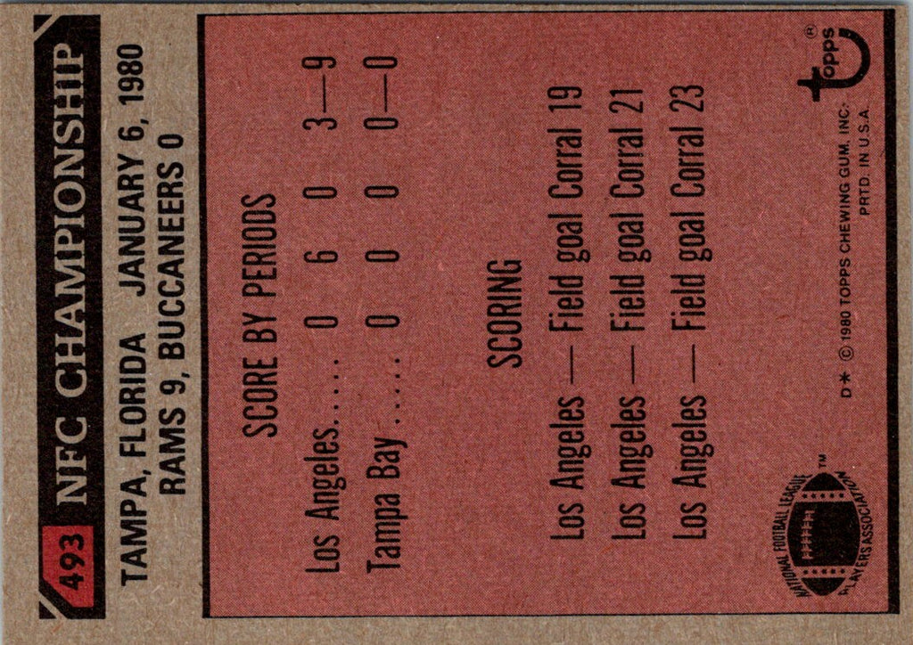 This 1980 Topps #493 card features the Los Angeles Rams and the Tampa Bay Buccaneers. It's the perfect addition to any football fan's collection. Featuring vivid colors and sharp details, it captures the action of the game in a single piece. Both teams are proudly represented, with the Rams logo and the Buccaneers' "B" prominently displayed. A great way to show your support for either team, this card is sure to be a hit among football fans. Get yours today and add a piece of NFL history to your collection!