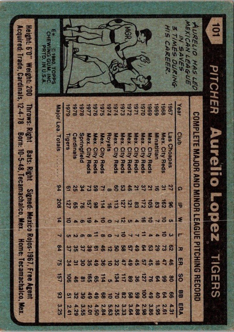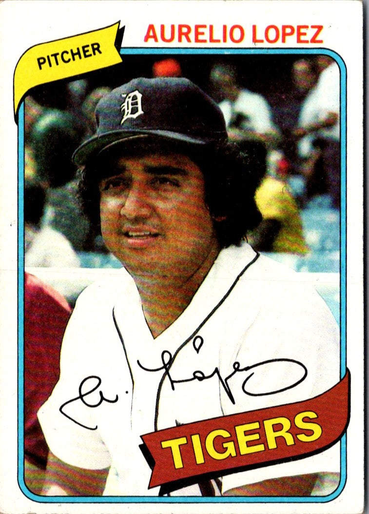 This 1980 Topps Aurelio Lopez #101 Detroit Tigers card is a must-have for all serious baseball card collectors! The card features a black & white headshot of the star pitcher with a full-colour Topps logo in the top left corner. The reverse side of the card includes a detailed statistical breakdown of Lopez's career stats, including ERA, wins and strikeouts. This card is a great reminder of the player's impressive baseball career, and would be an excellent addition to any collection.