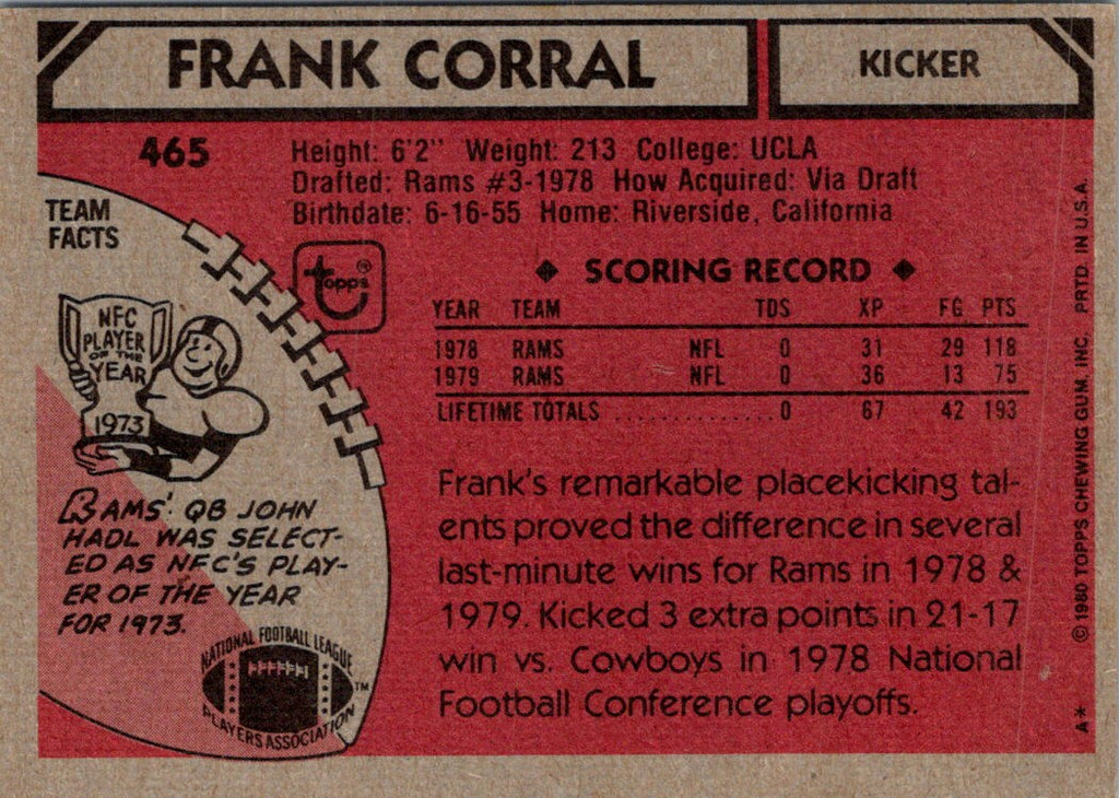 Description: 1980 Topps Frank Corral #465