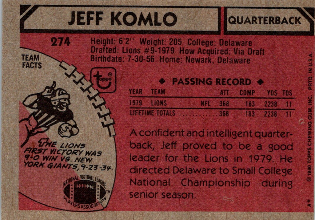 1980 Topps Jeff Komlo #274