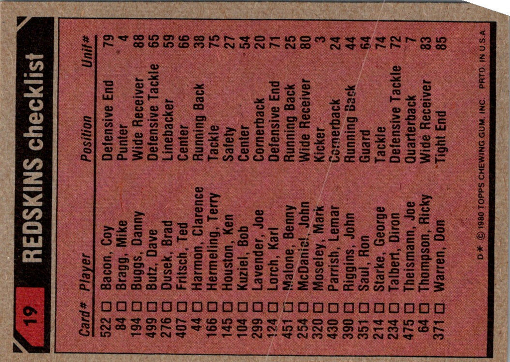 1980 Topps John Riggins/Danny Buggs/Joe Lavender/Coy Bacon #19