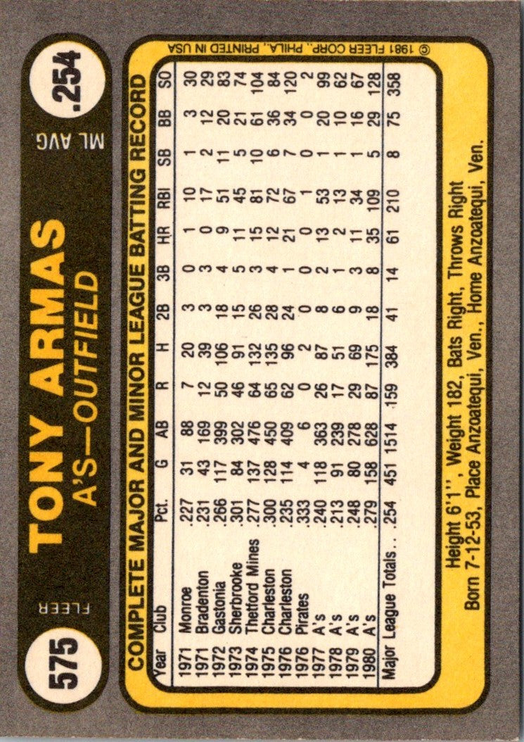 1981 Fleer Tony Armas #575
