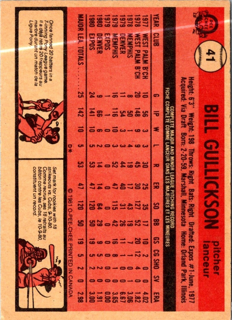 1981 O-Pee-Chee Bill Gullickson #41