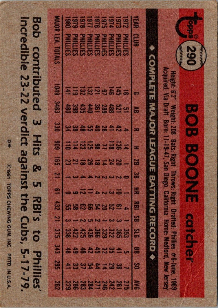 Description: 1981 O-Pee-Chee Bob Boone #290