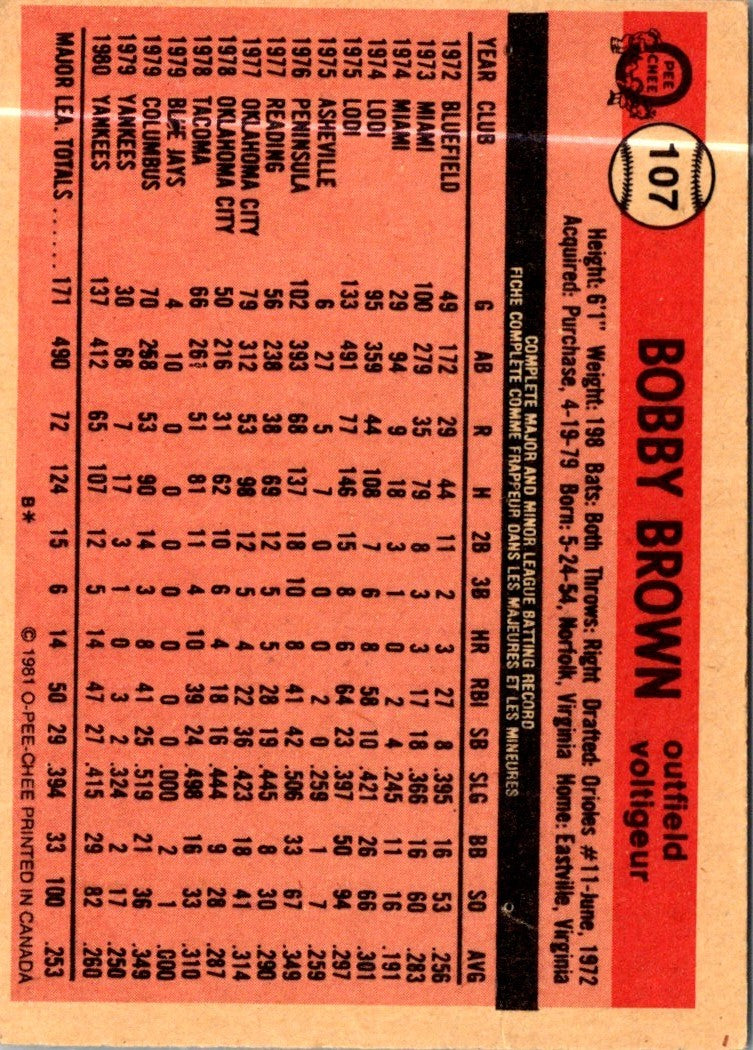 1981 O-Pee-Chee Bobby Brown #107