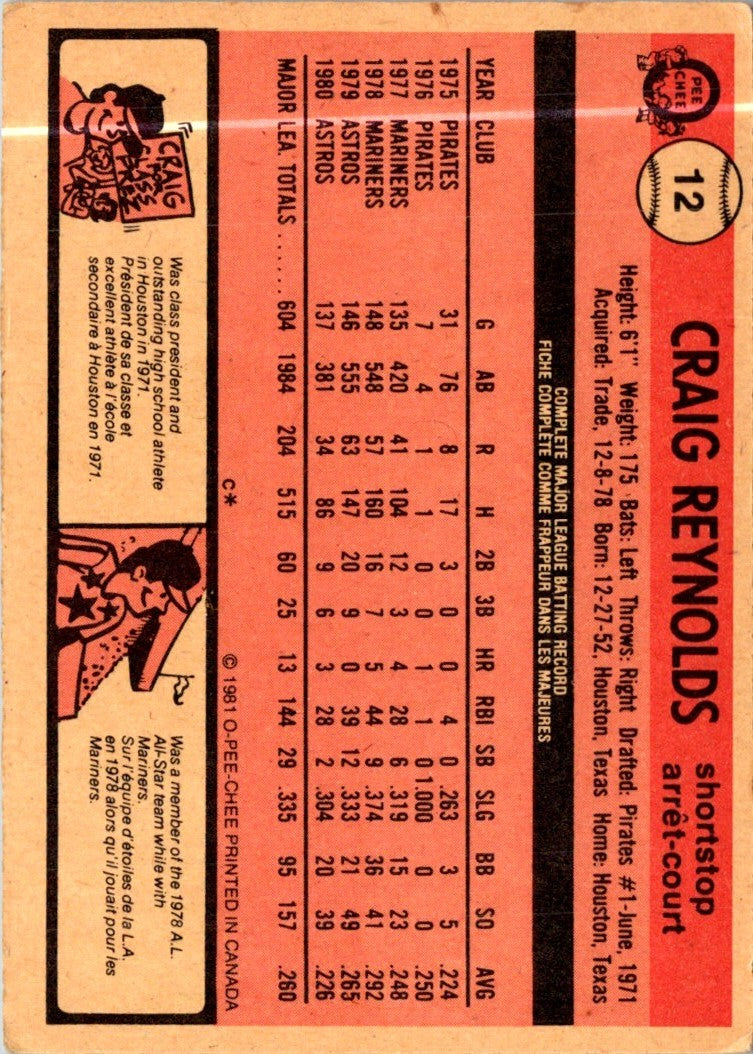 1981 O-Pee-Chee Craig Reynolds #12