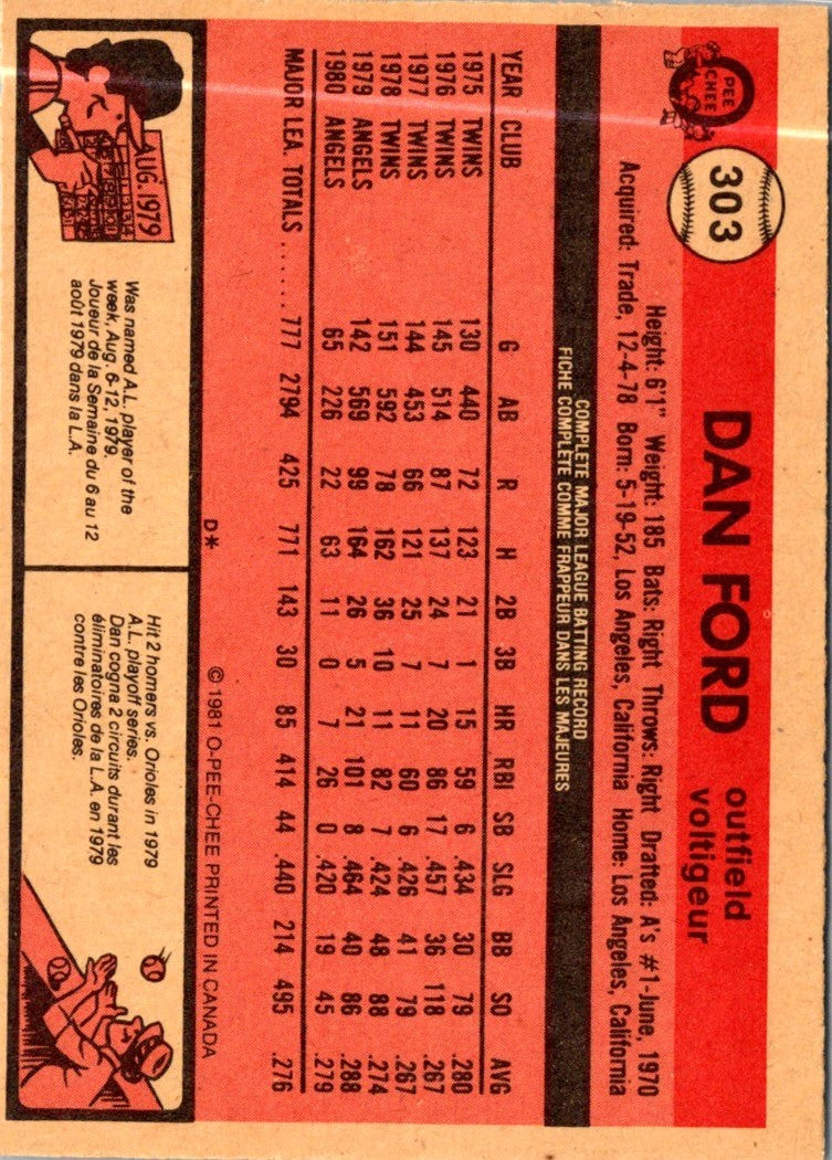 1981 O-Pee-Chee Dan Ford #303