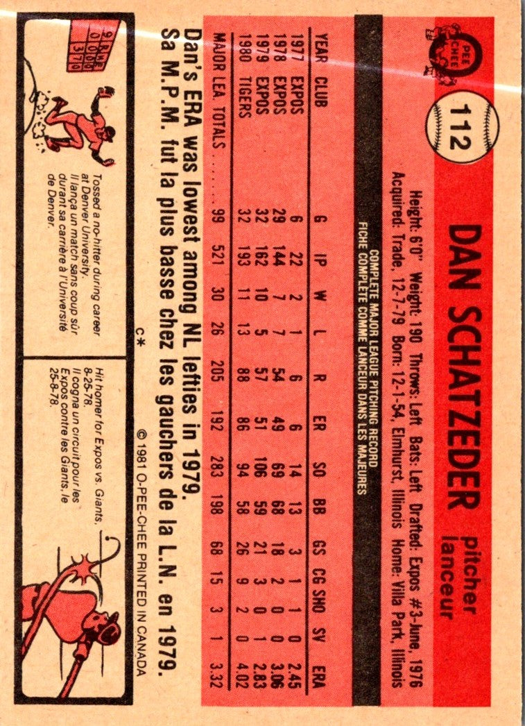 1981 O-Pee-Chee Dan Schatzeder #112