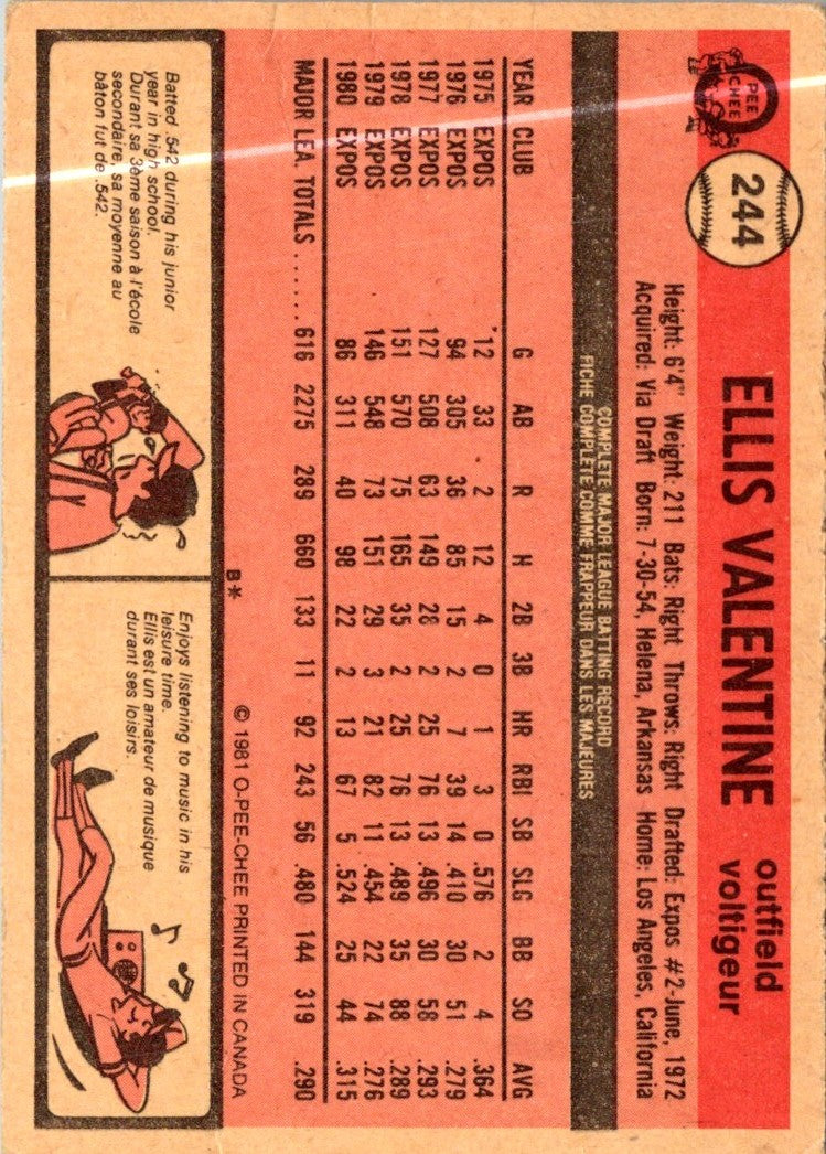 1981 O-Pee-Chee Ellis Valentine #244