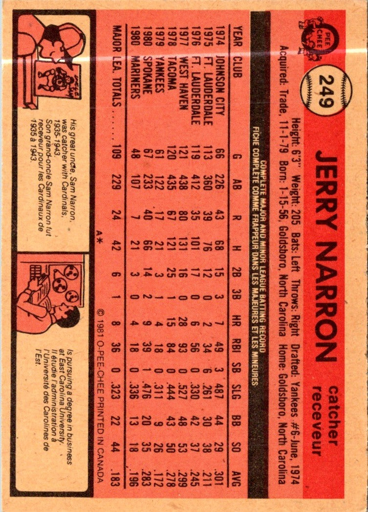 1981 O-Pee-Chee Jerry Narron #249