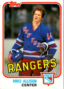 The classic 1981 O-Pee-Chee Mike Allison #221New York Rangers card is a must-have for any hockey fan! This card features a fantastic 3-D image of the Rangers' legendary player, Mike Allison. The card is printed on durable cardstock, and its full-color image is sure to bring you back to the 1980s. The back of the card also includes detailed stats on Mike Allison's career, making it a great conversation starter for any hockey fan. Add this card to your collection today and celebrate the greatness of Mike Allison!