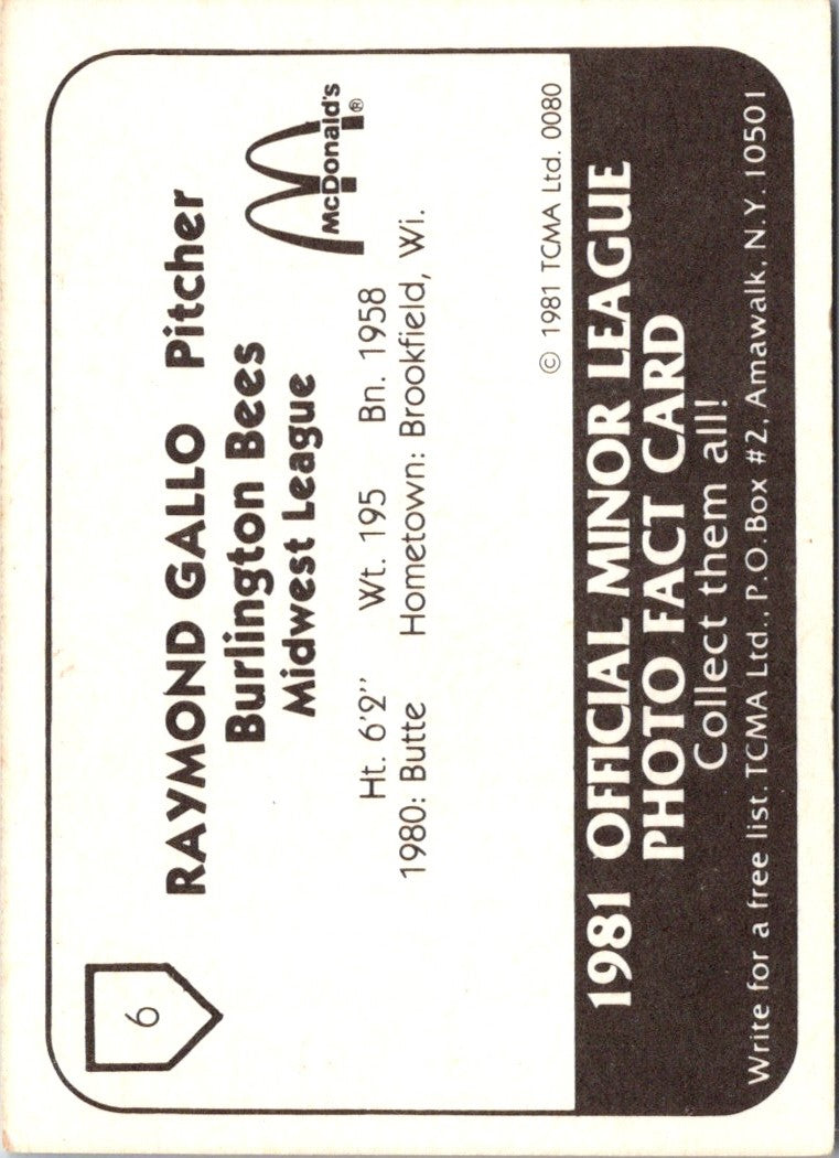 1981 TCMA Burlington Bees Raymond Gallo #6
