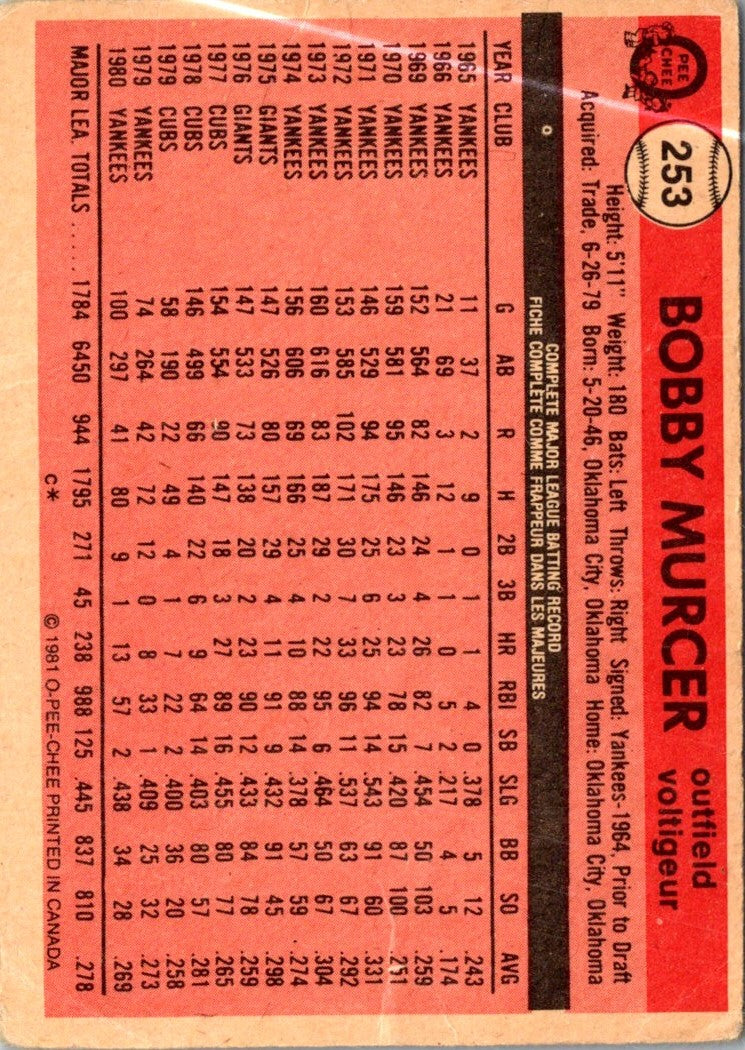 1981 Topps Bobby Murcer #602 New York Yankees is an iconic trading card from the classic Topps baseball series. Featuring a crisp, full-color photograph of Murcer in his Yankees uniform, this card is a must-have for any fan of the beloved outfielder. Murcer played an impressive 17 seasons in the majors, amassing over 2,100 career hits. His contributions to the game make this card a nostalgic reminder of his talent and skill. Add this piece of baseball history to your collection today!