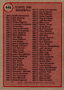 This 1981 Topps Checklist #446 card is sure to be a hit for any collector. This card features pictures of Reggie Jackson, Mike Schmidt, and George Brett, three of the most iconic figures in baseball. It is a perfect addition to any collection, as it celebrates the baseball stars of the early 80's. The card is printed on high-quality cardstock, ensuring it will stand the test of time. It is the perfect way to commemorate the greats of the game. Add this card to your collection today!