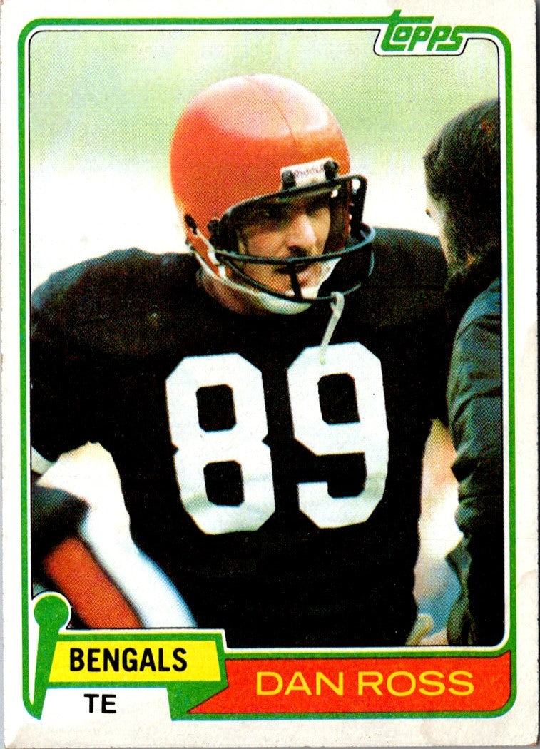 This 1981 Topps Dan Ross #192 Cincinnati Bengals card is a must-have for any football fan! This card shows Dan Ross in action on the field, wearing his classic Bengals uniform. The card is in great condition and features bright and vivid colors, making it a great addition to any collection. The back of the card includes detailed stats, a short biography, and a headshot of Ross. Get this card and add a piece of NFL history to your collection today!