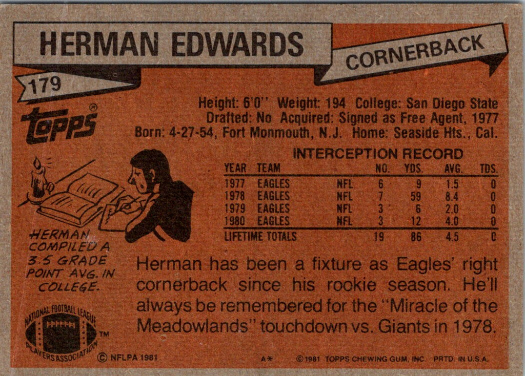 Description: 1981 Topps Herman Edwards #179