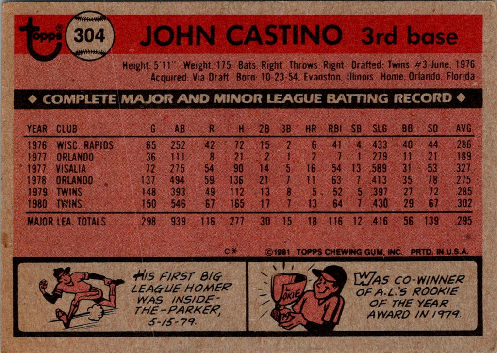 1981 Topps John Castino #304