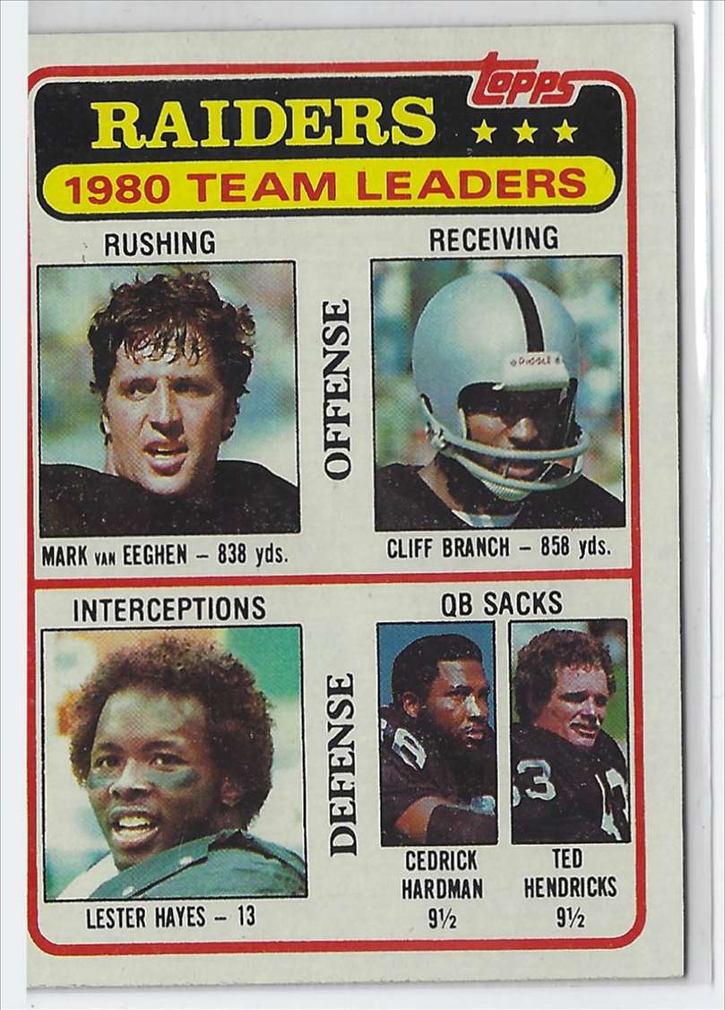 1981 Topps Mark Van Eeghen/Cliff Branch/Lester Hayes/Cedrick Hardman/Ted Hendricks #359