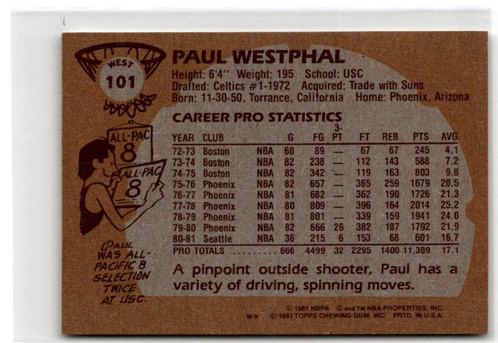 Description: 1981 Topps Paul Westphal #W101