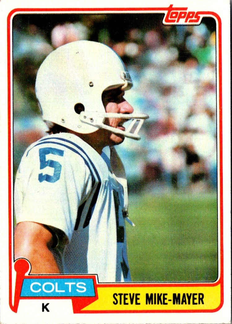 1981 Topps Steve Mike-Mayer #277 Baltimore Colts card is an essential piece of football memorabilia. This card features an action photo of Mayer in his Colts uniform and a detailed statistical summary of his career. His stats include 13 seasons with the Colts, 8 Pro Bowls, and 1 Super Bowl win. This card is beautifully presented with its bright colors and clear imagery. It's a must-have for any football fan or collector. Get your hands on this piece of history today!