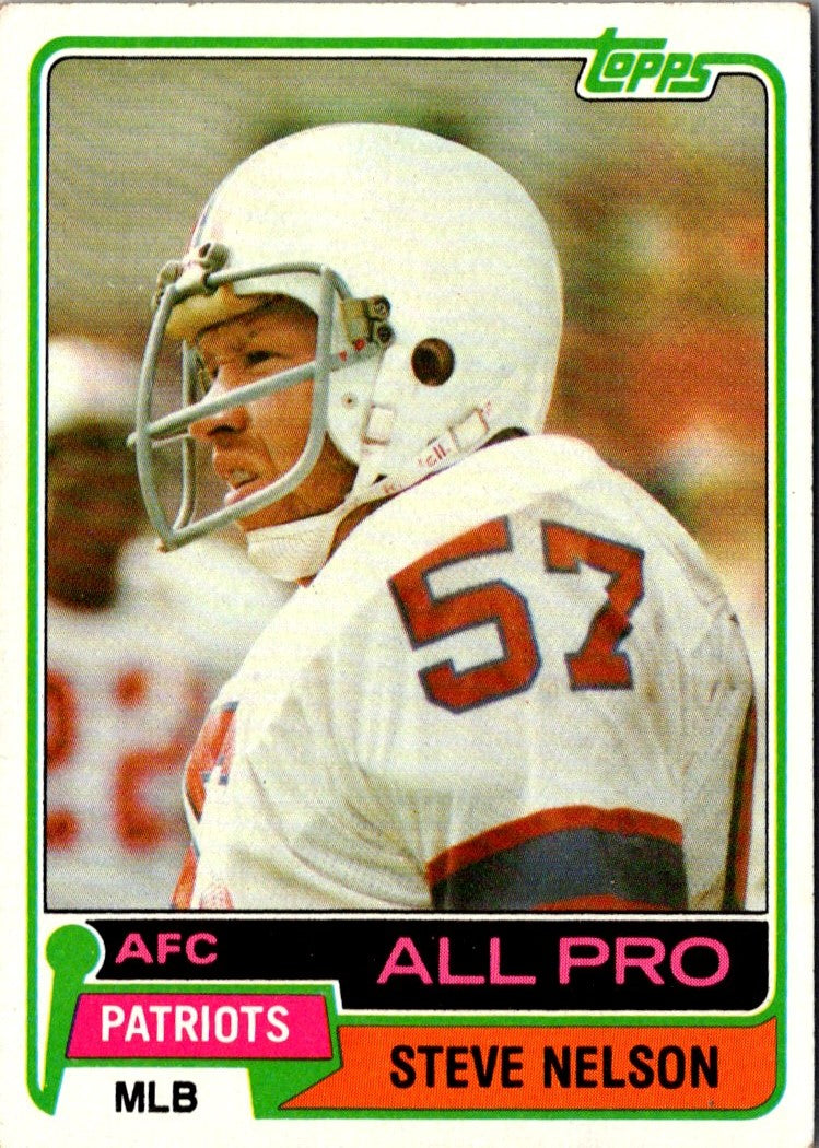 This 1981 Topps Steve Nelson #60 New England Patriots card is a must-have for any football fan or collector! Showcasing an action shot of the star linebacker in his Patriots uniform, this card is sure to be a great addition to any collection. Featuring Steve Nelson's full name, team logo, and a detailed biography on the back, this card is an excellent representation of the NFL legend. Celebrate the NFL's history with this 1981 Topps Steve Nelson #60 New England Patriots card!