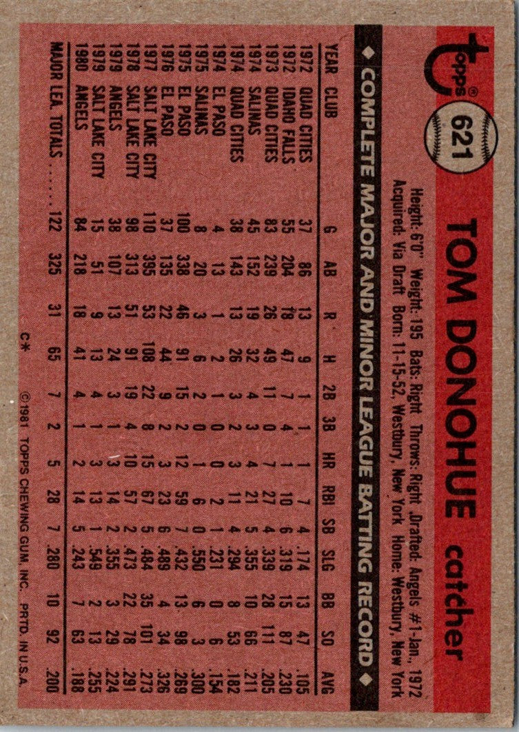 This 1981 Topps Tom Donohue #621California Angels baseball card is a great way to add to your collection or give as a gift. The card features a sharp, full-color image of Donohue in Angels uniform, with his name and team logo clearly displayed. The card is in good condition and is sure to please any fan of the California Angels. Get your hands on this classic piece of baseball history today!