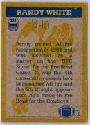 This 1982 Topps Randy White #332 card is a must-have for any serious collector. It features a classic black-and-white photo of the legendary defensive tackle and Hall of Famer in action. White was a nine-time All-Pro and eight-time Pro Bowler, and the card is a great way to commemorate his illustrious career. With a glossy finish and sharp corners, this card is in fantastic condition and perfect for any fan's collection. Get your hands on this classic card and add it to your collection today!