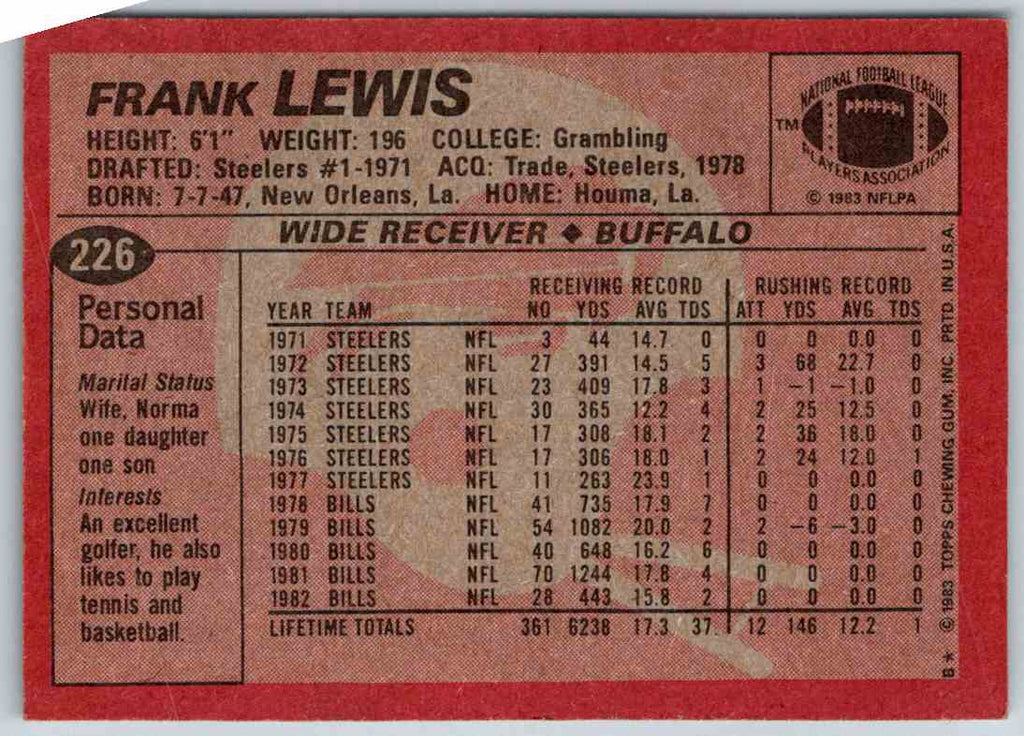 1983 Topps Frank Lewis #226