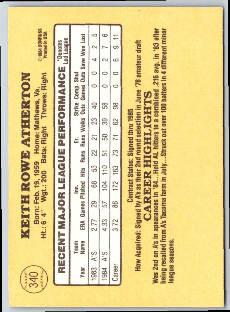 1985 Donruss Keith Atherton #340