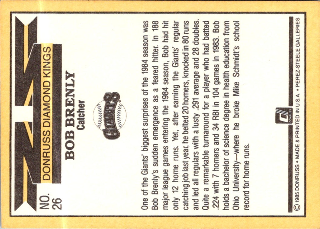 1985 Donruss Super Diamond Kings Bob Brenly #26