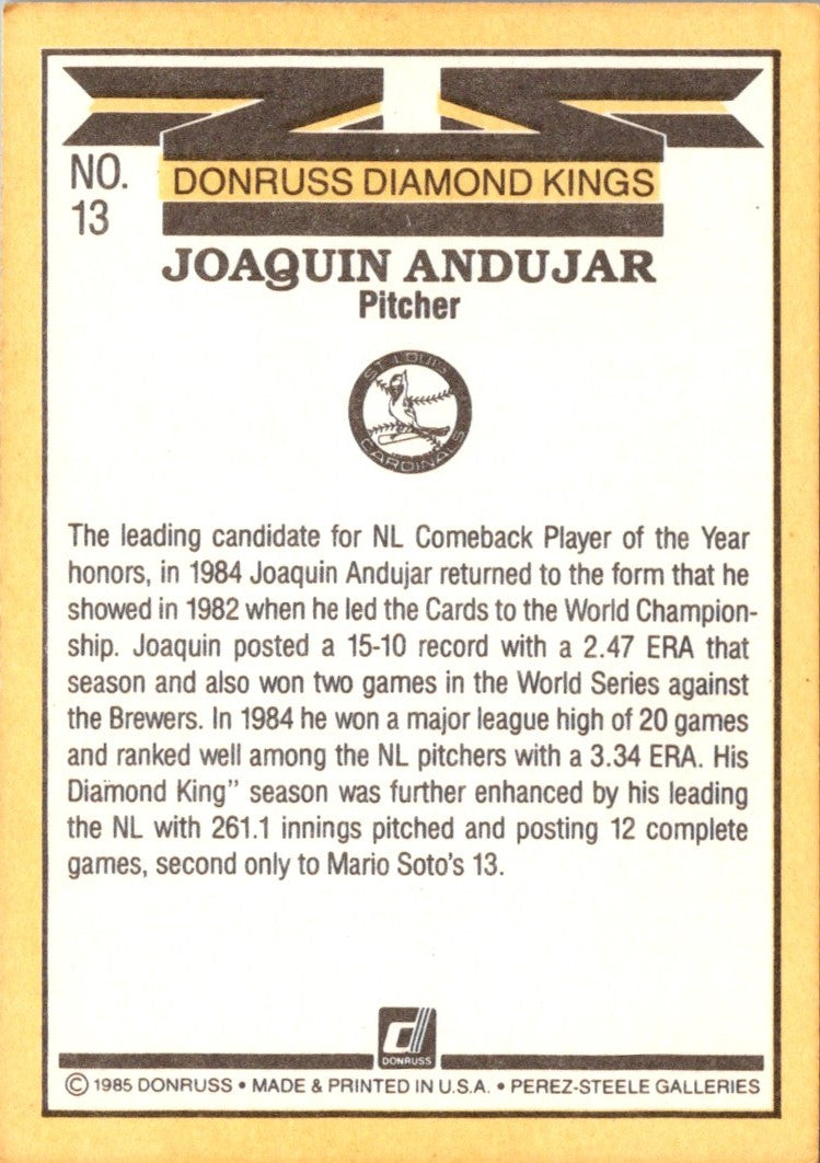 1985 Donruss Super Diamond Kings Joaquin Andujar #13