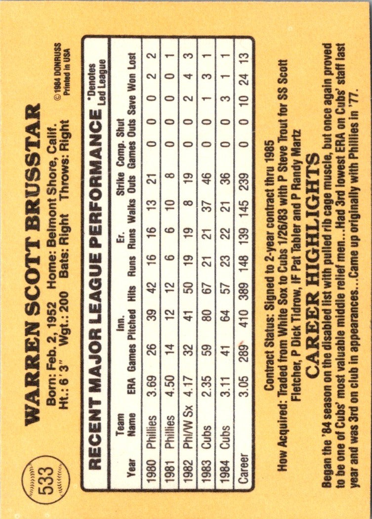1985 Donruss Warren Brusstar #533