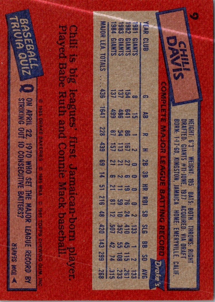 This 1985 Drake's Big Hitters Chili Davis #9 San Francisco Giants jersey is a must-have for any Giants fan. The high-quality polyester fabric, sharp graphics, and orange and black color scheme are sure to make this jersey a standout in your collection. The jersey features the Big Hitters logo on the left chest, and the name and number of Chili Davis on the back. It is the perfect addition to your Giants wardrobe, and is sure to make you the envy of your friends. Get your hands on this classic jersey today and show your Giants pride!