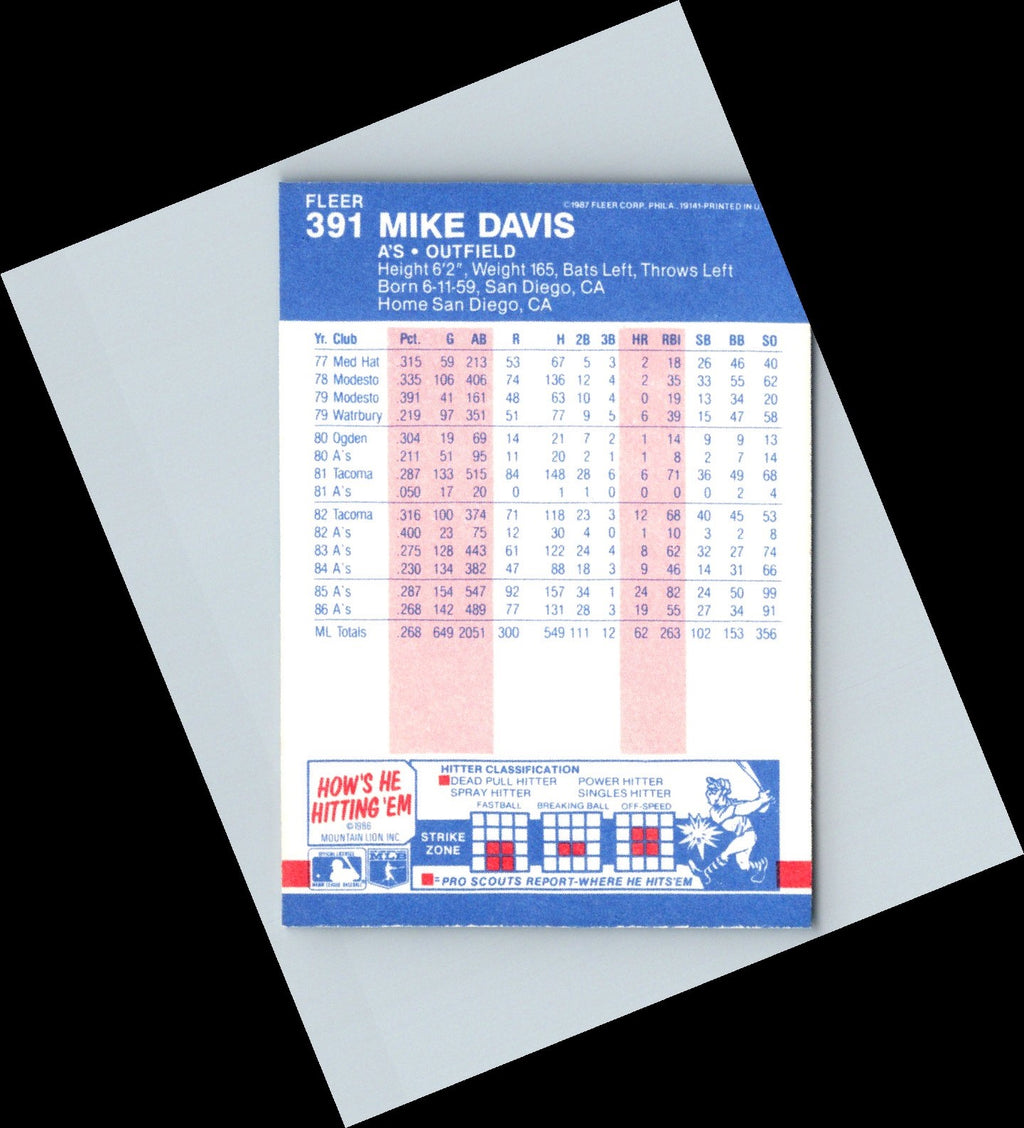 This 1985 Fleer Mike Davis #422 Oakland Athletics card is a must-have for any Athletics fan! Featuring the former slugger in his classic A's uniform, this card will be the perfect addition to any collection. With a glossy finish and vibrant colors, it's a great way to celebrate one of Oakland's most beloved players. Add this card to your collection today and celebrate the Oakland Athletics!