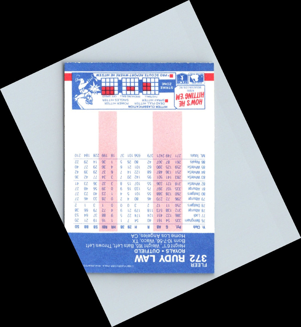 This 1985 Fleer Rudy Law #519 card is a must-have collectible for any Chicago White Sox fan. Featuring a crisp, clear image of Rudy Law in his Sox uniform, this card is sure to become a cherished part of your collection. It's a great addition to any fan's memorabilia, so don't miss out on this one!