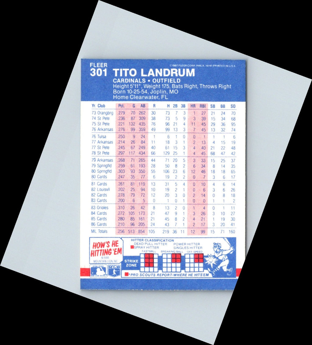 This 1985 Fleer Tito Landrum #232 St. Louis Cardinals card features the veteran outfielder in a classic batting pose. His signature red Cardinals jersey stands out as he prepares to belt a fastball. It is a great card to add to any collection as it captures one of the most beloved Cardinals players of the 1980s. With his infectious personality and exciting style of play, Tito was a fan favorite in St. Louis. This card is sure to bring back great memories for any fan of the Cardinals. Add this classic card to your collection today!