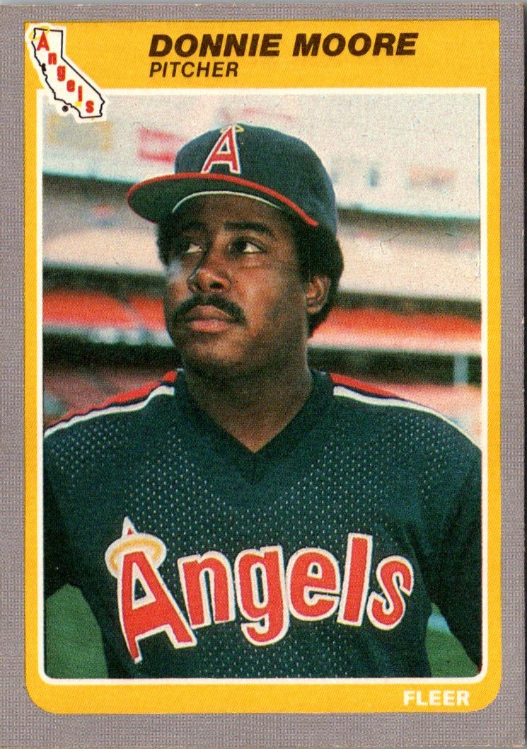 The 1985 Fleer Update Donnie Moore #U-82 card celebrates the career of the late Donnie Moore, a pitcher for the California Angels. This card features a full-color photograph of Moore in his Angels uniform, with his name and team at the bottom. It's a great way to commemorate an important part of Angels history. Add this card to your collection and show your appreciation for the legacy of Donnie Moore.