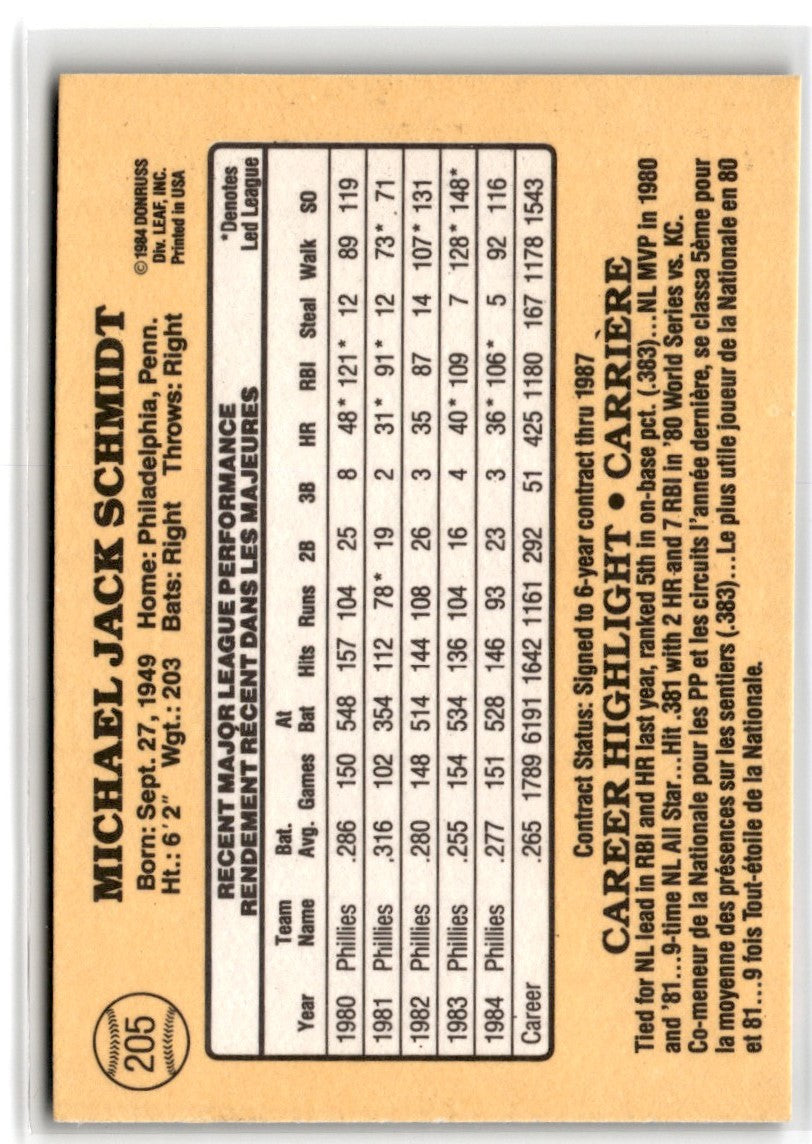 Description: 1985 Leaf Mike Schmidt #205