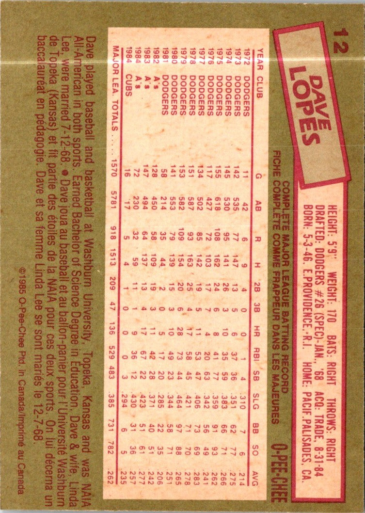 This 1985 O-Pee-Chee Dave Lopes #12 Chicago Cubs card is a must-have for any Cubs fan! Featuring a crisp, clear image of the beloved infielder, this card is a great addition to any collection. Perfect for any fan of Dave Lopes or the Chicago Cubs, this is a must-have piece of memorabilia. Get your hands on this card today and show your Cubs pride!