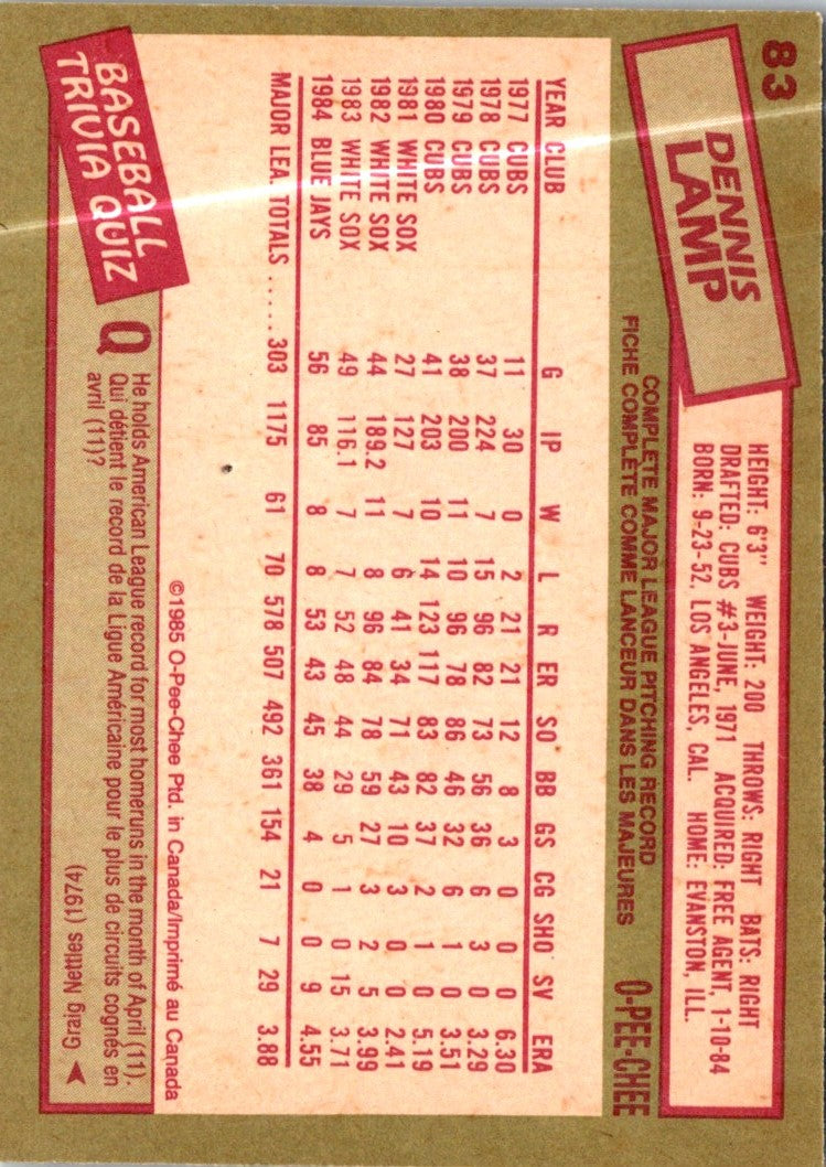 1985 O-Pee-Chee Dennis Lamp #83