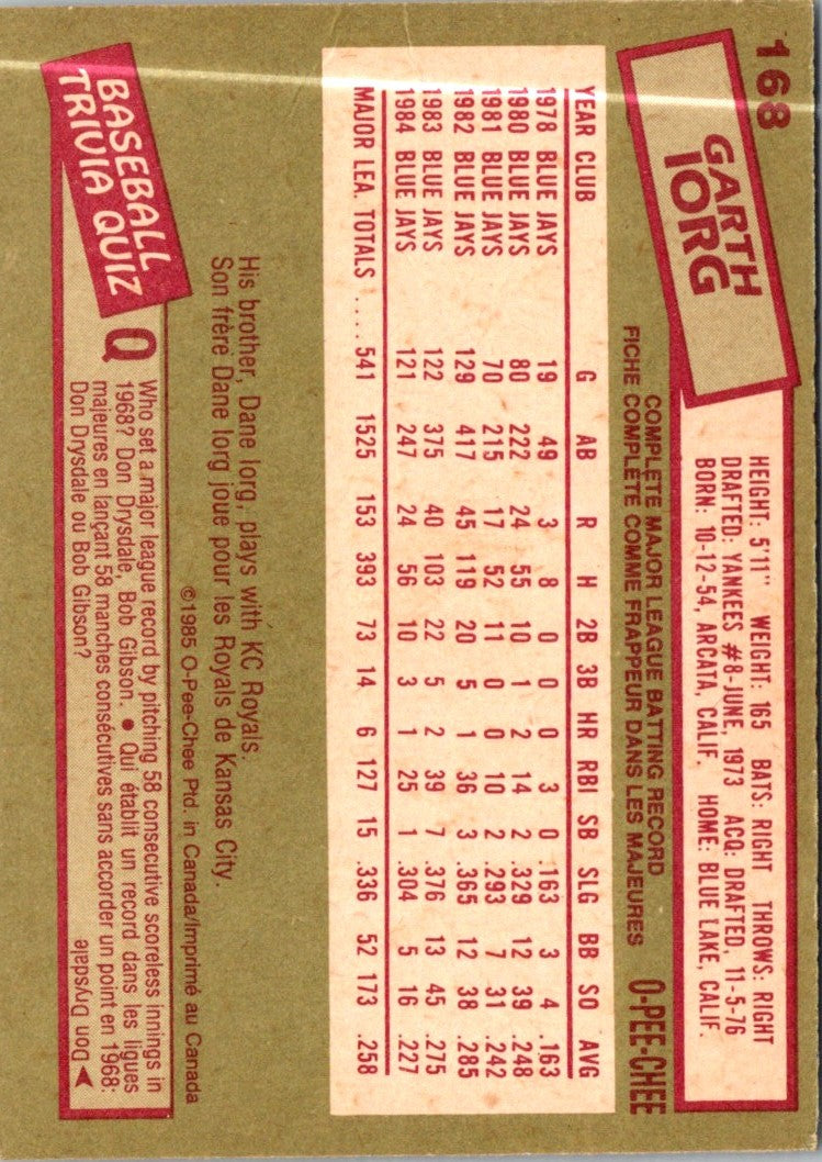 This 1985 O-Pee-Chee Garth Iorg #168Toronto Blue Jays card is a great addition to any collection. A must-have for any Blue Jays fan, it features a great color photo of the star player along with his name, team, and position. The card is in excellent condition and is perfect for any fan looking to add a piece of Blue Jays history to their collection. It's the perfect way for any fan to show their love for the team!