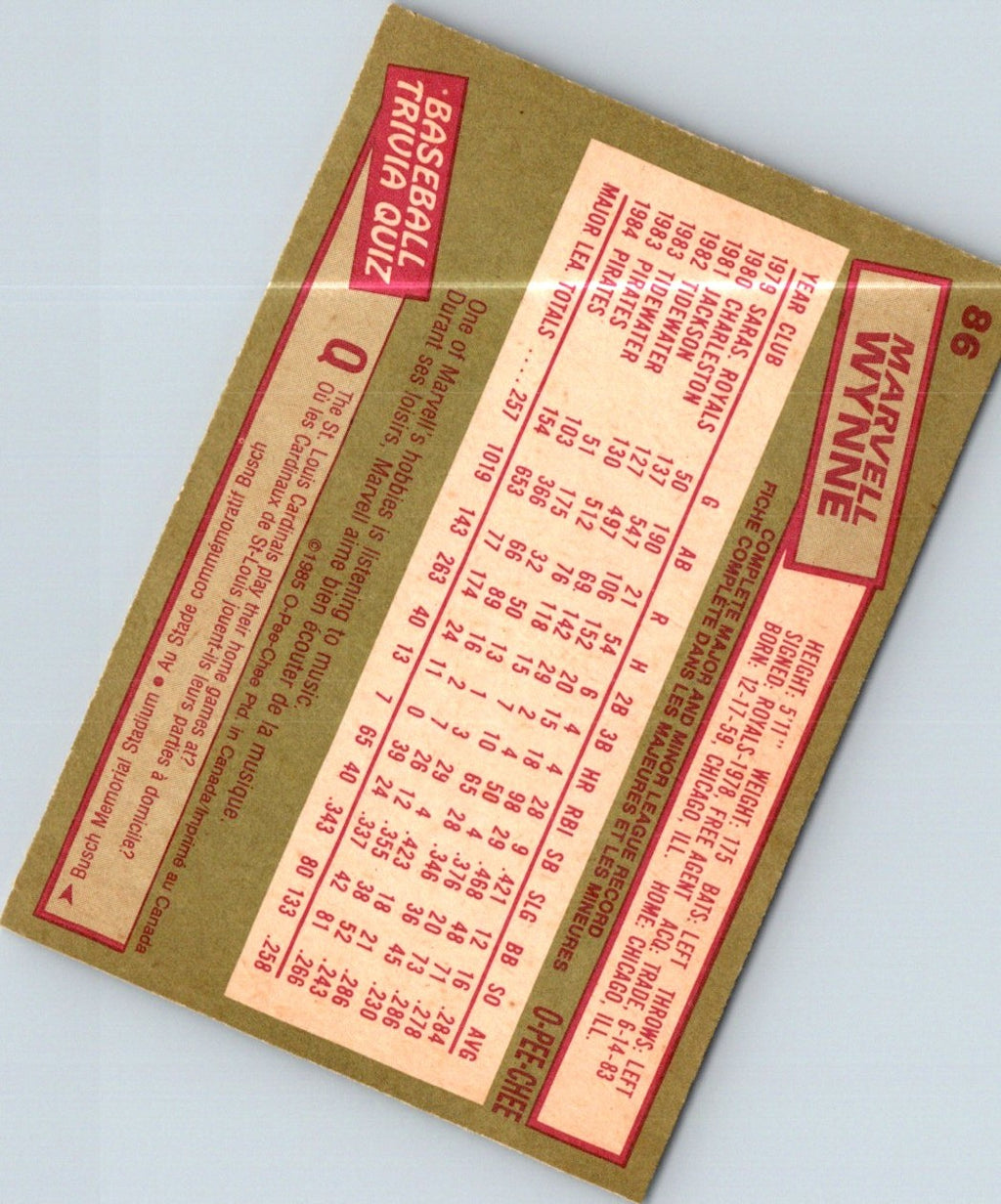 This 1985 O-Pee-Chee Marvell Wynne #86 Pittsburgh Pirates card is in great condition and perfect for any collection. Marvell Wynne was a standout player for the Pirates in 1985, and this card is a great way to commemorate his contributions to the team. The card features a full color photo of Wynne with the Pirates' logo and colors prominently displayed in the background. The card is a must-have for any fan of the Pirates or Wynne. Add it to your collection today!