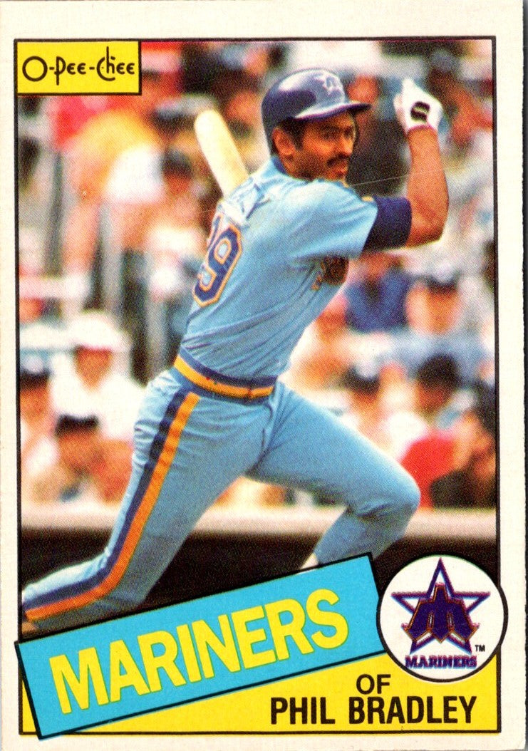 This 1985 O-Pee-Chee Phil Bradley #69 Seattle Mariners card features the Seattle Mariners outfielder in a classic batting stance. Bradley was an All-Star in 1985 and a key component of the team's success that year. This card is a must-have for any Mariners fan or collector of vintage baseball cards. It's the perfect addition to any collection and a great way to honor a Seattle Mariners legend. Get your hands on this card before it's gone!