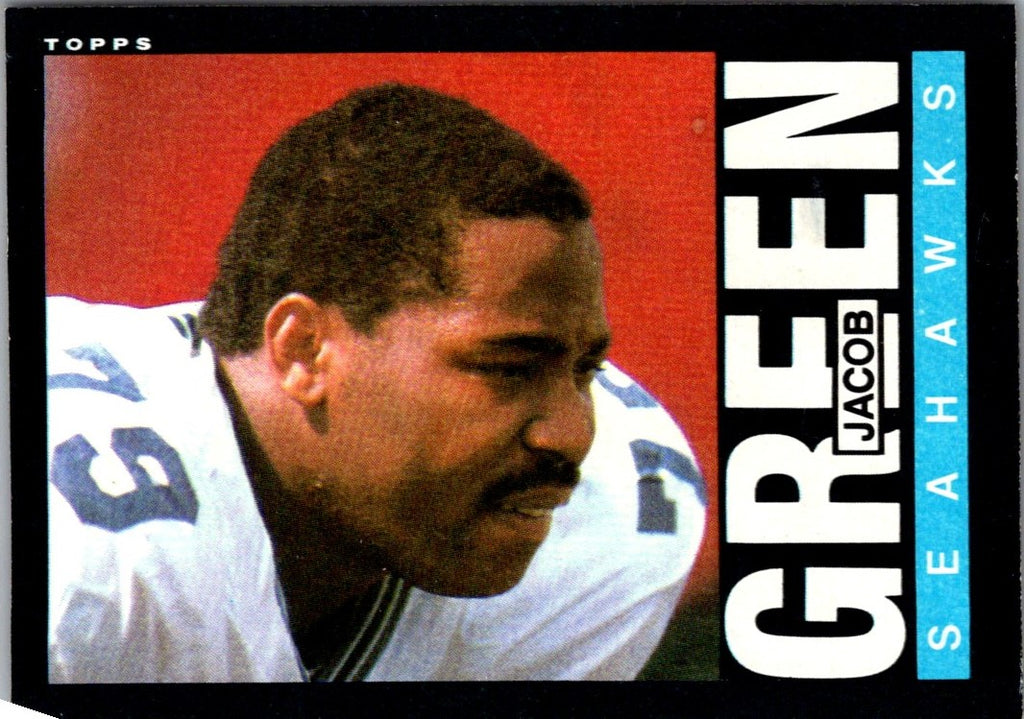 This 1985 Topps Jacob Green #385 Seattle Seahawks card is a must-have for any Seahawks fan! Jacob Green was the first-ever draft pick for the Seahawks in the 1980 draft and went on to become one of the best defensive ends in franchise history. This card captures Green in all his glory, wearing the classic blue and green uniform. It's a great addition to any fan's collection and a fitting reminder of one of the greatest Seahawks of all time.